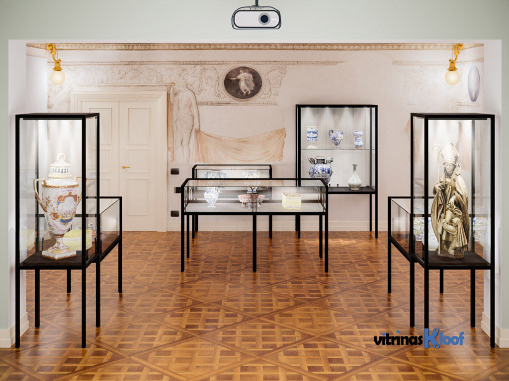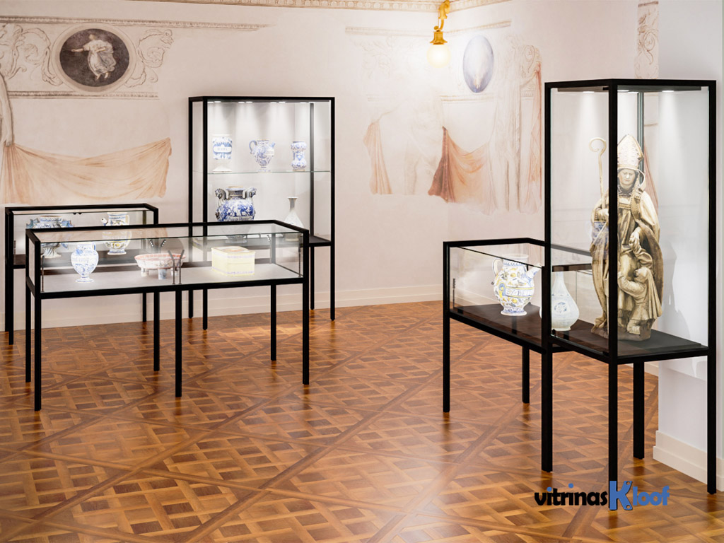 Las vitrinas para museos, ofrecen una amplia variedad de tamaños, colores, características y materiales, para satisfacer cualquier reto de diseño y estética, diseñadas para exhibir y proteger objetos de valor en entornos prestigiosos como museos, galerías de arte y salas de exposición. Fabricadas con una sólida estructura de hierro, madera y cristal templado, estas vitrinas combinan la durabilidad y diseño moderno. Incorporan la iluminación mediante focos led integrados en la parte superior, que proporcionan una iluminación uniforme y profesional para resaltar los detalles de los objetos expuestos. Con los estantes ajustables y las cerraduras integradas, son ideales para organizar exposiciones complejas con una gran variedad de objetos.